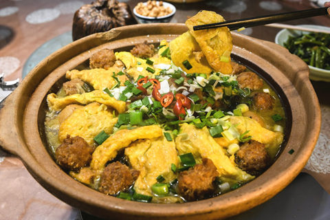 一品鍋的吃法也很講究,由長輩先用餐,食用第一層後,其他人再動筷,從上往下一層層吃,切不可翻掏。
