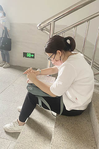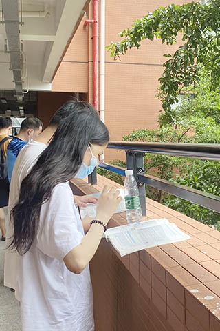 考試第一天(18號),工作員在校門查驗了健康碼、核酸碼(需持48小時核酸陰性證明)與行程碼;進入校區在考場安排展示板上,細細地查找所在考室——11號考室安排在4號樓3樓。目之所及,無論空地、樓梯、過道都是手捧書本的學子;有年輕的、有經驗豐富的參加者(貌似沒有年齡限制,只是對學歷、工作經驗等方面有所要求)。考試前40分鐘廣播通知可以進入考場,但大部分考生仍在努力翻閱資料、作最後衝刺。進入考場需要核對身份證與准考證、進行全身安全檢查,只可帶筆、橡皮、飲用水及機械手錶進入考場,其他隨身物品統一放置講台前。老師先派發草稿紙、答題卡,最後是試卷(整整16頁),考試不能提前交卷;時間到了,考生將草稿紙、答題卡、試卷疊放於桌面,老師逐一收取,最後清點份數,核對過後考生才能離開。考試結束後即回酒店休息,接著又努力地溫書,深深地演繹了——臨急抱佛腳。