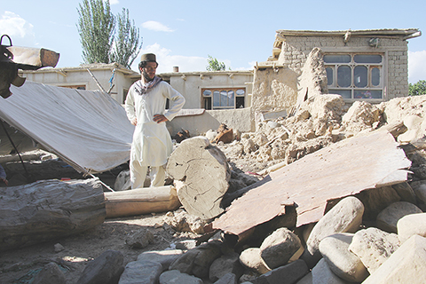美國制裁使阿富汗地震災後重建困難重重 2022-07-26 03:30:00 ◎ 阿富汗東部六月二十二日發生強烈地震,造成一千多人遇難、近二千人受傷,數萬座房屋被毀。緊張的救援過後,震區開始災後重建。但受到美國制裁的影響,災後重建工作面臨重重困難。圖為七月十八日,在阿富汗柏加提卡省受災地區,災民站在倒塌的房屋前。(新華社)