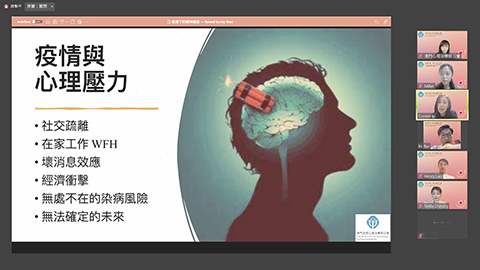 講座上,香港精神科醫生曹國柱以現時香港的疫情為參照指出,持續的疫情所帶來的一系列改變,例如社交疏離、在家工作、壞消息效應、失業與經濟衝擊、無處不在的染病風險、無法確定的未來等變動因素,會令市民產生不同程度的心理壓力。曹國柱醫生建議要多留意情緒、認知和行為上的不同警號,例如出現頭痛、胃痛、肌⾁僵硬、睡眠及胃口改變;情緒上出現失落、容易激動及暴躁、憤怒、孤獨、氣餒、對周遭事情失去動力與安全感等。