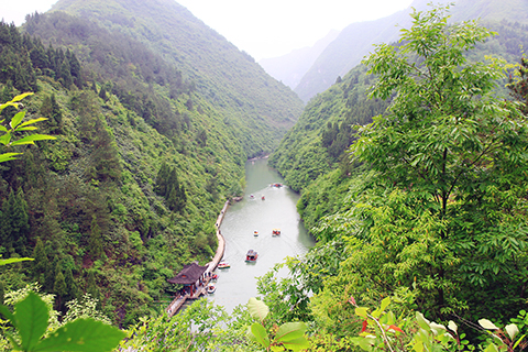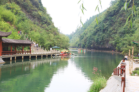 富水河中段,近年來建起了一個人工湖,叫做燕棲湖。湖畔有亭,古雅而別致,亭上有聯云:亭棲紫燕空山靜,花落清溪富水香。湖水深達數米,清澈的水藍得醉人,美得誘人。兩岸青山翠巒和頭頂藍天白雲統統被一湖碧水攬入懷抱,水中的倒影變得豐富多彩起來。竹筏悠然自得地嬉戲於湖上,岸上的圍觀者抵擋不住這種誘惑,一時間爭先乘座,湖上頓時熱鬧起來。但見撐筏人竹篙輕輕一點,竹筏便划開湖面,悠然地飄浮在水天一色的湖面上。遠處飄來山歌聲,男聲厚重而粗獷,女聲輕靈而婉轉,一唱一合,把富水河寫成了一首抒情詩,畫成了一幅風光畫,譜成了一曲輕音樂。◇