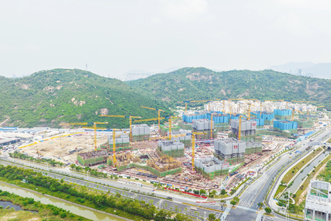 現階段,項目正開展二十多棟塔樓的標準層施工,其中住宅單位的三大部份會採用環保預製件方式建造,包括預製突窗、預製樓梯、預製蒸壓輕質加氣混凝土(ALC)間牆。此外,幼稚園、小學、衛生站、長者服務中心、家庭綜合服務中心及約五千平方米商業面積(約六十個商舖)等社區配套設施亦同步建設。