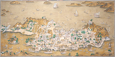 一幅長318厘米、高30厘米的彩色澳門山水長卷畫(下稱「長卷畫」),約繪畫於乾隆初年,是目前所知最大幅的澳門山水與城市面貌的地志畫作,原件收藏於新加坡國立大學博物館,畫面清晰可見澳門風貌,如中西建築、漁村生活、稅館,以及人文情懷等,涵蓋香山城、石岐頭、前山、白石等地。澳門基金會行政委員會主席吳志良引介,數年前在新加坡國立大學博物館展出該畫時,被澳門學者楊斌發現,並開始進行深入研究,但由於現場無法拍攝整幅畫作,難以全面展示內容。他表示,澳門記憶團隊與新加坡方面經過輾轉的溝通聯繫,終於得到該館大力支持,取得該畫作原圖的電子檔(超過一百兆),並通過專門技術,全圖上載至澳門記憶文史網,讓大眾欣賞昔日澳門,乃至鄰近地區的風貌。他也感謝澳門科技大學圖書館的後續工作,對原畫進行高清拍攝,將為讀者提供更高清的澳門景緻,同時體現了各方對澳門史料的重視。