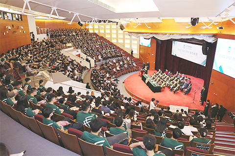 劉駿校長在致辭中以感人故事和寶貴經歷,從三個方面勉勵學生突破自我,不斷提升。第一,抓住學習機遇,學會感恩父母、師長與同窗;第二,勤於思考,掌握靈活的學習方法,在實踐中探索,學以致用;第三,充份發揮個人潛能,勇於面對挑戰,培養團隊精神,在團結互助中進步。城大將為學生提供高質量的課程與教學,建構多樣化的學習與實踐平台,拓展國內外交流,培養學生全面發展,全力以赴地培養學生成長成才,走向成功。