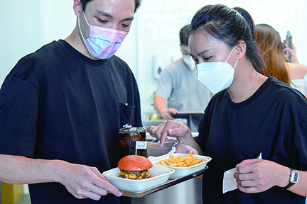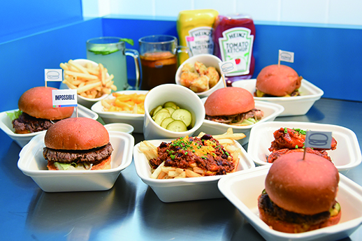 香港漢堡包店Honbo的特色是堅持全人手製作,由醬汁、漢堡扒至麵包都是自家食譜製作。採用美國威斯康辛州的 USDA Double Gold 級牛肉,每隔2-3天來貨一次並會由廚師親自加工,而漢堡扒混合牛肩肉及牛腩肉製成,每天新鮮製作。值得一提的是,獨自配方製成的牛奶薯仔包,在製作中加入了薯仔泥,令麵包更有彈性及保持麵包中的水份。蔬菜每天新鮮運到,酸瓜更是利用自家配方醃製。經歷過多次嘗試而製成的惹味自家醬汁由不同香料製成,完美地配合美國新鮮漢堡扒和薯仔包;為迎合素食風氣,Honbo 亦有利用新興的Impossible 素肉,而當中材料包括水、大豆濃縮蛋白、椰子油、葵花籽油、天然調味料、馬鈴薯蛋白等等,擁有類似牛肉的味道但絕對沒有任何肉類成份。