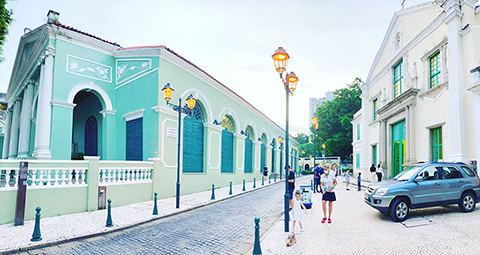 漫步在石仔路上、仰看那歐式街燈掛置的花籃,還有那圓頂矮小的墨綠路柱,這些景致讓人仿如穿越時空回到四百年前的澳門。當輕風徐來,仰望時空交錯的景致時,不妨坐在長椅上發發呆,再平視那充滿葡國特色的茶座小亭,不期然間,又回到現實。圍繞前地的正是圖書館、教堂和修院,還不時聽到教堂的祈禱經文與悅耳的鐘聲。也難怪,這裏成為遊人的打卡聖地與拍照景點。要是晚上行經此前地,或許還能遇見相擁的戀人,給前地增添幾分浪漫的情景。◇