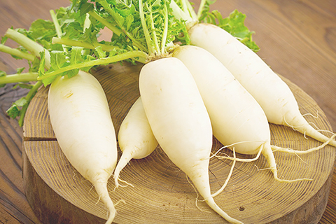 3.白蘿蔔︰《本草綱目》對蘿蔔稱讚有加,稱其為「蔬中最有益者」,白蘿蔔能消食健脾順氣。白蘿蔔汁可以潤肺清熱、化痰平喘和中。