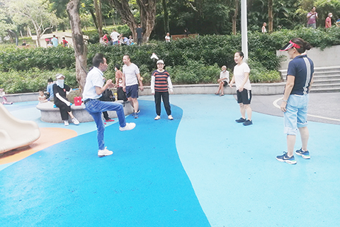 毽子球對場地並沒有過多要求,平坦一點的地方即可,也不用很大的面積,可以舉手投足就行。