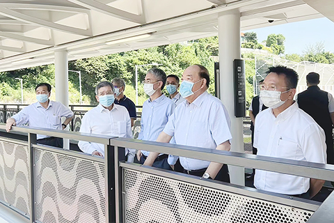 【特訊】行政長官賀一誠日前在行政法務司司長張永春和運輸工務司司長羅立文等官員陪同下視察了環松山步行系統主體工程的狀況。