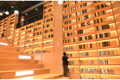 ◎ 九月二十六日,市民在圖書館內挑選、借閱書籍。重慶市江北區圖書館鴻恩寺新館日前投入試運行對外開放。該館建在風景秀美的鴻恩寺森林公園西北角,總建築面積六千五百四十八平方米,館藏文獻總量四十餘萬册,設有十餘個免費開放區域,共有閱讀席位一千二百個。(中新社記者 周毅 攝)