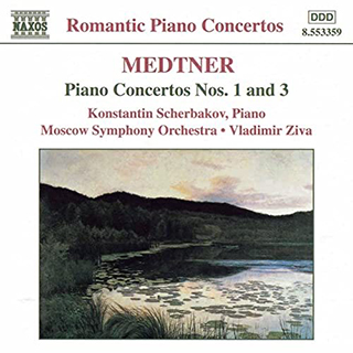 三部鋼琴協奏曲是梅特納的代表作,但錄音不多,首先介紹的兩張唱片是俄羅斯鋼琴家薛巴柯夫(Konstantin Scherbakov 1963-)演繹於一九九六年的錄音。薛巴柯夫屢獲國際獎項,他是一九八三年首屆拉赫曼尼諾夫大賽桂冠得主,亦是二零一零年蕭邦鋼琴大賽冠軍Yulianna Avdeeva的老師。他的演繹在奔放中洋溢詩意,結合Vladimir Ziva指揮莫斯科交響樂團的伴奏,十分恰當地發揮出這三部協奏曲的韻味。