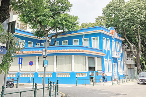 位於西墳馬路頂與歐華利街交界的社會工作局總部,毗連舊西洋墳場和望德堂,是一座有七十多年歷史的兩層高建築物,原為意大利籍澳門建築師夏剛志的私人別墅。由於此幢建築物外牆漆上藍色為主,白色為副的顏色,故此被人們稱為「藍屋仔」。