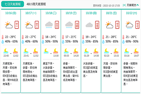 跨部門全面部署應對新春旅客增加 預計春節假期日均逾67萬人次出入境 宋玉生公園周邊街道 試行「禁煙區域」措施首日暢順 新春期間警方人潮管制及交通管制措施 治安警「冬防」 共截查二百六十四人 消費模式 變鮑參翅肚銷情淡 市民多是北上辦年貨 配合新春節慶活動及出行需求 政府採多項措施 提升重點區域交通運力與候車環境 「文藝志書‧澳門卷」的《民歌卷》 與《曲藝音樂集成》面世 岑浩輝晤廉署紀監委員會一行 雙方就加強廉政建設等交流 酒店外的餐飲場所 法案建議可獲豁免旅遊稅 卞立新會晤張永春 哪些行為須以公證書作出? 新濠去年末季業績 總營運收益同比升9% 婦聯會員大會總結去年規劃來年 未來將從六方面開展工作 致力營造安全有序節日環境 治安警局從三方面開展工作 市署禁丹麥疫區禽肉入澳 澳證券基金行業協會與廣東證券期貨業協會建戰略合作 澳投資基金業推介會在穗舉行 街區調解協會成立旨減少法院訴訟以維護澳和諧社會 建議強化宣傳調解服務與培訓 歲晚期間與多個社團機構辦系列新春活動 澳娛綜合攜手社區迎馬年 動產與不動產修復班報名 與支付寶及澳門通深化合作促數字化升級 金沙創新支付體驗引客遊澳 市署周六、日續辦賀歲活動 曾因另四宗車內盜竊被捕 澳男死性不改再偷車內電腦落網 二0二六珠台青籃球賽 12隊獲頒競賽友誼杯 澳門中企協會春茗聯誼逾千人與會 傅建國:務實服務澳「三五」規劃實施 疑遭假冒淘寶客服電話詐騙 一澳女損失五萬一千元 大橋珠海公路口岸明起迎客流車流高峰期 料高峰期單日客流量或破15萬人次 熱帶氣旋「納沙」今日將進入南海北部 澳今晚風勢增強氣溫漸降 2022-10-16 03:30:00 【特訊】地球物理暨氣象局消息:位於菲律賓呂宋島附近海域的熱帶氣旋「納沙」,將於今日(十六日)進入南海北部,並逐漸轉向西至西南方向移動。受該熱帶氣旋及東北季風共同影響,預料周日晚間開始本澳風勢將會增強及氣溫逐漸下降,周三最低氣溫約為十七度。氣象局將密切監察該熱帶氣旋發展,請市民留意最新天氣資訊。 天氣乾燥。天晴,部份時間多雲。吹四至五級偏北風,間中六級及有陣風。氣溫約為攝氏二十二至二十九度。相對濕度介乎百分之四十至六十五之間。預測最高紫外線指數約為六,級別屬於高。◇