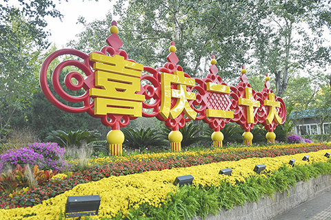 當前,「祝福祖國」巨型花果籃文字中的「喜迎二十大」已轉換為「喜慶二十大」。此外,在天安門廣場南側人民英雄紀念碑前花台,長安街沿線主題花壇中雙子座大廈佈置的「喜迎(慶)盛會」花壇、京西賓館西門佈置的「喜迎(慶)二十大」花壇,相關文字也已完成轉換。