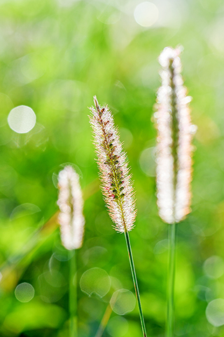 ◎ 在廣西南寧市邕寧區,狗尾草上掛滿露珠(十月四日攝)。新華社發(馬華斌攝)
