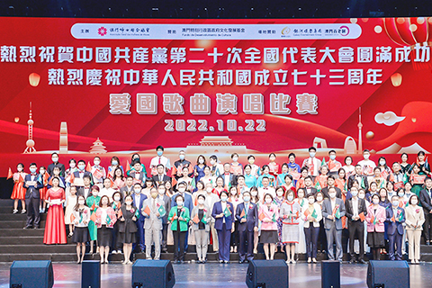 【特訊】為祝賀中國共產黨第二十次全國代表大會圓滿成功、慶祝中華人民共和國成立七十三周年,澳門婦女聯合總會昨(二十二)日舉辦「愛國歌曲演唱比賽」,來自本澳社團、學校、機構企業的廿六支隊伍報名參賽,通過演繹經典愛國歌曲,唱響愛國愛澳擁黨的主旋律,抒發對二十大圓滿成功和祖國偉大成就的自豪之情、對中華民族美好未來的讚頌與願景,向黨和國家深情獻禮。