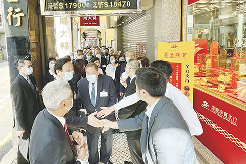 昨日早上十一時,同善堂會員大會主席崔世昌、副主席黃如楷、值理會主席崔世平、副主席鄭秀明、劉藝良、監事長賀定一等一眾負責人,沿新馬路、議事亭一帶沿門勸捐,得到不少商戶積極支持。崔世平表示,在日前沿捐記者招待會後,有不少熱心人士和公司機構響應捐款,支持慈善公益熱情高漲,全堂深受鼓舞和策勵。祈望在活動期間,廣開善款來源,籌募慈善經費,人人向善,弘揚「同心濟世,善氣迎人」精神。