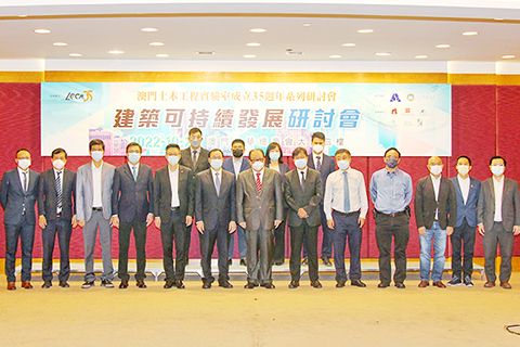 由澳門土木工程實驗室、廣東省建築科學研究院集團、澳門科技大學創新工程學院環境科學與工程系共同主辦,澳門建築置業商會、澳門建築師協會、澳門建造商會、澳門工程師學會、澳門工程顧問商會、澳門建築機械工程商會共同協辦的是次活動於昨上午九時舉行開幕式,其中的主禮者包括:澳門環境保護局局長譚偉文、公共建設局處長陸惠財;澳門土木工程實驗室董事長區秉光、廣東省建築科學研究院集團董事長陳少祥、澳門科技大學講座教授李宗津;澳門工程師學會理事長蕭志泳;澳門建造商會理事長羅志昌;澳門建築機械工程商會理事長蕭東文;澳門運輸及交通工程協會理事長周子鍵;澳門建築置業商會監事長劉永誠;振華海灣工程有限公司執行董事王瑋;澳門大學科技學院助理教授黃滿安;中交四航院(澳門)有限公司總經理楊彩燕;中交三航院(澳門)有限公司總經理陳謙;珠光工程發展有限公司董事總經理金暉。