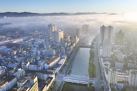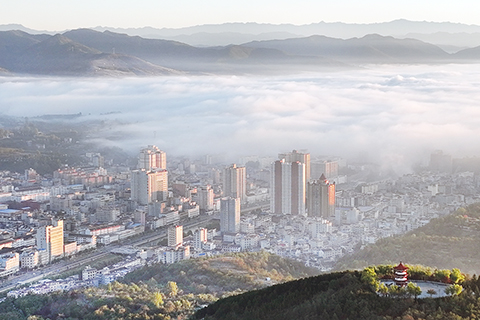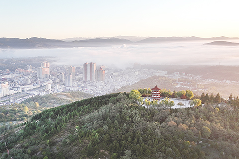 深秋時節,久雨初霽的陝西省商洛市洛南縣城雲霧繚繞,巍峨秦嶺、奔騰洛河、山城建築若隱若現,唯美夢幻。◇