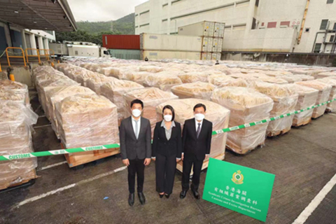 【中新社香港十一月七日電】(記者魏華都)香港海關七日召開記者會表示,海關近日偵破一宗涉嫌利用遠洋船走私案件,檢獲大批走私貨物,估計市值三億元(港幣,下同),並拘捕兩人。以檢獲走私貨物的市值計算,此為海關今年破獲的最大宗海路走私案件。