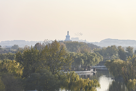 ◎十一月十六日,北京天氣晴好,北海公園白塔沐浴在夕陽中。(中新社記者 田雨昊攝)