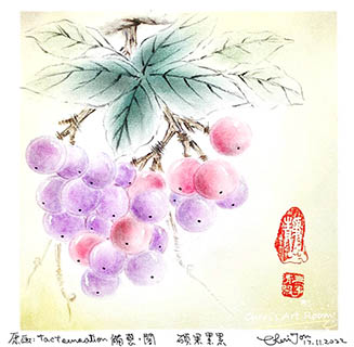 最近跟老師學習運用仿水墨畫風格技法畫葡萄後,看著畫作,除了想起媽媽最愛吃日本所產的香印葡萄外,也突然產生了好奇,想知道多些與葡萄有關的傳說或魔法。在魔法世界裡,葡萄的行星屬性是月亮,屬水元素,與古希臘酒神戴歐尼修斯、古羅馬的酒神巴克斯(Bacchus)及古埃及掌管美、愛、富裕、音樂和舞蹈的女神哈索爾也有關係。葡萄的藤、葉和水果都十分有用,葉子在地中海地區,人們會用來烹飪,葡萄的藤可製作精美工藝,果實則可讓酒和製作美食。