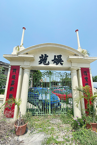 娛苑位於香港新界元朗橫洲的東頭圍,經過東頭圍村口的士多、祠堂和鄉公所,前行不足百米,便可到達。娛苑是新界鄉紳領袖蔡寶田的祖居,它始建於1927年,是採用半別墅半農園式的建築,而整體風格則仿傚英式的設計。大宅前建有牌坊,牌坊上刻有「娛苑」兩個大字,鐵閘安裝在牌坊之下,旁邊以兩根白柱襯托著,牌坊兩邊刻有一副對聯:「娛覽遠山青人畫,苑環嘉樹紅葉歸」。在牌坊的兩側,原來是建有圍牆,把大宅與外界分隔開來的,但由於日久失修,經已倒塌,如今已經不復存在了。走訪那天,我與友人都可以輕易地自牌坊旁邊走了進去,而宅前亦停泊了不少車輛,沒有了圍牆,人與車自然是可以自由出入了。