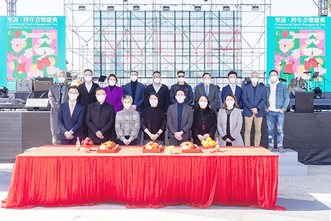 文化局局長梁惠敏、美高梅品牌策劃副總裁廖頴琦、銀河娛樂集團公共關係項目管理助理副總裁黃梓漢、金沙中國有限公司度假區市場推廣助理副總裁鄭磊、新濠博亞娛樂有限公司創新及公共關係總監賴珮君、永利澳門有限公司永利皇宮品牌及廣告總監陳家明、澳娛綜合度假股份有限公司企業品牌發展及市場推廣助理集團總監葉芷雅、文化局演藝發展廳廳長鄭繼明、旅遊局商務旅遊及活動處代處長Filipe Trindade Carlos、澳門廣播電視股份有限公司董事暨執行委員會委員羅翔天、治安警察局交通廳副警司梁宏豐、交通事務局協調處代處長程凱健、澳門旅遊塔會展娛樂中心集團總經理(商務)傅于恬、澳門可口可樂飲料有限公司集團行政總裁余曉峰、澳門樂團有限公司樂隊管理及藝術策劃高級經理汪加、棋人娛樂製作有限公司創辦人及主席鍾楚霖及澳門歌手潘君保等出席,共同祈求活動順利圓滿。