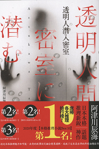 今期為大家介紹的阿津川辰海的《透明人潛入密室》,是以一種新穎又充滿巧思的特殊設定為基礎,集結科幻、法庭、聲音、遊戲多種推理形式,建構而成的推理小說短篇集。當中包含四個故事,《透明人潛入密室》《六個狂熱的日本人》《被竊聽的命案》《逃離第13號艙房》。