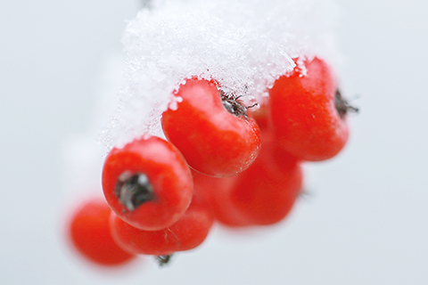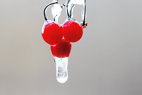 ◎ 一月一日,在山東省鄒平市南洞村,野生的小紅果上掛著冰。新華社發(高發芳攝)