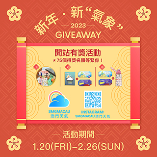 【特訊】為更廣泛地推廣氣象科普知識,澳門地球物理暨氣象局增設「澳門天氣」Instagram帳戶,期望透過更為多元和趣味性的宣傳活動普及氣象知識。此外,即日起至下月二十六日,市民只需於Instagram應用程式中搜索「澳門天氣」、「smgmacau」,或掃描二維碼追蹤氣象局Instagram官方帳戶,並完成簡單步驟,即有機會獲得開站小禮物。