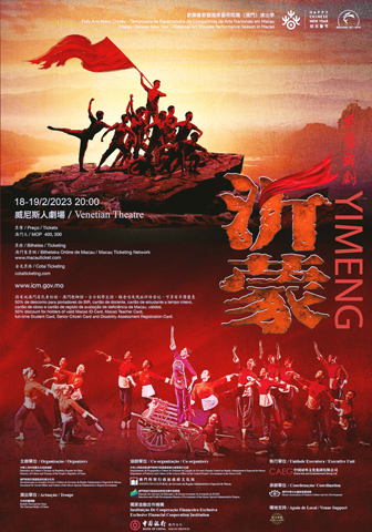 由國家文化和旅遊部與澳門特別行政區政府社會文化司主辦,中央人民政府駐澳門特別行政區聯絡辦公室宣傳文化部、澳門特別行政區政府文化局、澳門特別行政區政府教育及青年發展局協辦,中國對外文化集團有限公司組織執行的中央芭蕾舞團原創芭蕾舞劇《沂蒙》,將於二月十八日及十九日(星期六及日)晚上八時在澳門威尼斯人劇場登台亮相,歡迎有興趣的市民購票欣賞。
