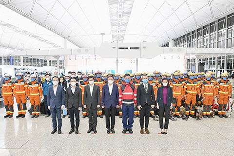 當天晚上,署理行政長官陳國基、保安局局長鄧炳強及消防處處長楊恩健在香港國際機場為搜救隊送行,衛生署署長林文健亦出席,為隊員打氣。