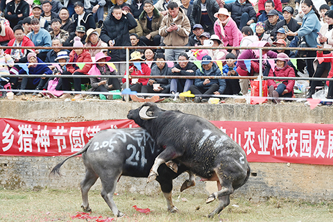甘肅東鄉:丹霞好似羊肉卷 天津第四屆五大道海棠花節 廣州圖片展紀念辛亥革命 北方花粉過敏高發區發預報 清明:「風清景明處 追思伴春生」 開江魚經濟帶動消費 獵神節 2023-02-20 03:30:00 ◎ 二月十九日,鬥牛現場,兩頭鬥牛勢均力敵。當日,雲南省昆明市宜良縣九鄉彝族回族鄉上演「獵神節」鬥牛比賽。「獵神節」是當地彝族群眾祈禱五穀豐登、幸福安康的傳統節日。(香港中通社圖片)