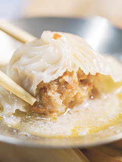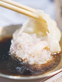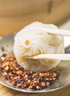 外皮透出肉汁,咬一口,肉汁不留餘地地濺出,啜過鮮香的湯汁後,先蘸一下辣椒油,再感受彈牙的蝦仁及鮮嫩的鮮肉餡於口感上的對比。筆者十分感動澳門終於有一家像樣的湯包專賣店了!