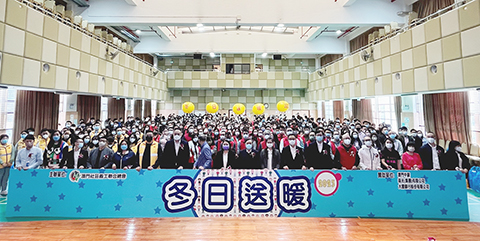 由澳門社區義工聯合總會主辦,澳門中銀、南光(集團)有限公司、大豐銀行股份有限公司贊助的「冬日送暖二零二三」活動昨日下午二時三十分假街坊總會社區服務大樓六樓舉行,澳基會委員黎振強、教青局青年發展處長譚兆華、社工局長者服務處長甘潔玲、街坊總會副會長兼立法議員何潤生、副理事長兼立法議員梁鴻細、群力智庫副理事長兼立法議員顏奕恆、義工總會會長陳曉平、理事長鄧文基、中銀澳門分行義工協會會長陳榮達、南光青年協會理事長黃舒翔、大豐銀行康樂會監事長施山河、歸僑總會副會長廖麗瓊、新濠國際發展有限公司社區關係及企業責任總監官、天網資訊科技(澳門)有限公司副主席歐家輝等主禮。