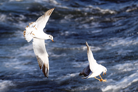 夏綠蔥蘢碧海蔚藍,浪花柔順的拍打海岸礁石,海鷗跟隨海韻的樂曲翩翩起舞。無論是清晨或傍晚,波光粼粼的海面都是海鷗翱翔的好地方。這個美麗的海島少有海鷗的天敵出現,它是海鷗休養生息繁衍之地。海鷗們用海藻、枯草、羽毛、貝殼等東西在懸崖上築巢生產,海鷗蛋的顏色多變而美麗。