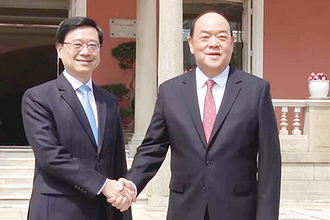 當日,李家超一行經港珠澳大橋抵達澳門,先考察當地最新的旅遊及會議展覽設施,了解澳門在推廣旅遊文化的最新發展。其後,李家超與澳門特區行政長官賀一誠會面,就推展港澳合作、攜手推進粵港澳大灣區高質量發展作深入交流。