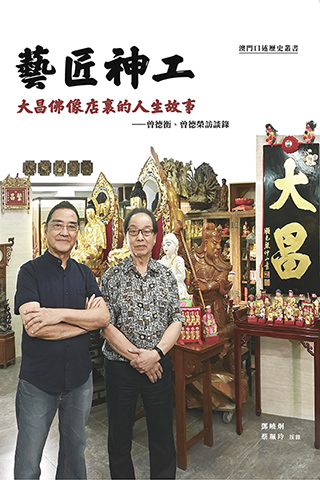 「木雕──澳門神像雕刻」分別於二00八年及二0一七年先後被列入《國家級非物質文化遺產名錄》與澳門非物質文化遺產清單,「木雕──澳門神像雕刻」代表性傳承人曾德衡、第三代傳承人曾德榮皆具出色的工藝造詣和豐富的人生經歷。為更好保護和弘揚這項非物質文化遺產,澳門檔案館於數年前對曾德衡、曾德榮開展了口述訪談工作,後經整理輯錄成書,冀令讀者能深入了解本澳佛像製作的歷史傳承和工藝技巧,以及造像者背後的人生故事。該書還收錄了大量的佛像照片和製作過程圖片,可供更直觀地了解佛像製作的工序及相關細節。