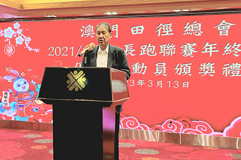 他介紹,該會頒發二0二一/二0二二長跑聯賽年終獎、優秀運動員,以及二0二二年澳門國際馬拉松本地獲獎運動員現金獎,並讚揚各運動健兒克服艱難情況,保持狀態,賽出佳績,該會將爭取提供更多比賽平台,讓大家再創佳績。