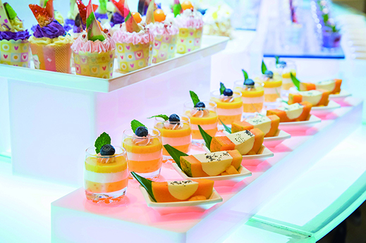 薈萃國際美饌的咖啡廳供應環球美饌佳餚,自助午餐推介精選海鮮、自選配搭的新鮮沙律、金黃香脆的特色天婦羅、鮮味十足的壽司及刺身、甘甜溫順的中式燉湯等美食。一眾甜品愛好者當然不可錯過眾多精美甜品,款款都色彩繽紛,味道誘人。咖啡廳於「春日饗樂盛薈」推廣期間,更設有自助午餐優惠。