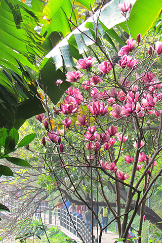 麓湖公園是廣州白雲山南邊的一座免費公園,是廣州市民休閒鍛煉的好地方。這裡湖光山色,綠樹成蔭。特別是到了冬春交替,落羽杉的紅給人非常搶眼的深秋之感,還有白色紫色的大朵玉蘭花又給人春天的節奏。