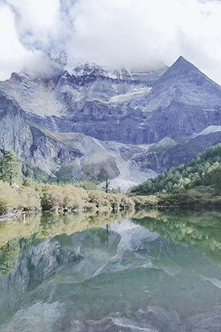 走過一公里左右的金屬柵格棧道,來到海拔4100米的珍珠海,眼前霎時寬闊,雪山和綠樹環抱,由淡綠色向深綠色過渡的湖水,在陰雲的映襯下顯示著莫蘭迪色系的高貴感。巍峨的仙乃日神山白雪皚皚,聖潔的神山,碧綠的湖水,讓我深情享受著大自然的饋贈,深深地吸引......應是被我們的虔誠所感動,若隱若現的太陽竟然露出了她的笑臉,有攝影師驚呼,快看快看,原來,在金色陽光的照耀下,樹木雪山倒映在清澈見底的湖泊裡,與仙乃日神山無縫對接,珍珠海在陽光的透射下好似翡翠瑩瑩泛光......◇