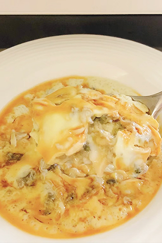 清明前後螺肉最肥嫩,所以自古有「清明螺賽肥鵝」的說辭,這時家家戶戶吃螺螄。母親是烹螺螄高手,她燒出來沒有泥土味,且易吸鮮美。她還會用螺螄做拿手好菜,螺肉蒸蛋,一兩個鮮雞蛋搗碎後倒入碗中,溫開水沖後放進20多個去殼的螺螄肉。而後放在鍋中蒸,旺火燒燜一刻鐘,一碗黃澄澄的螺肉蒸蛋大功告成,宛如水墨丹青。