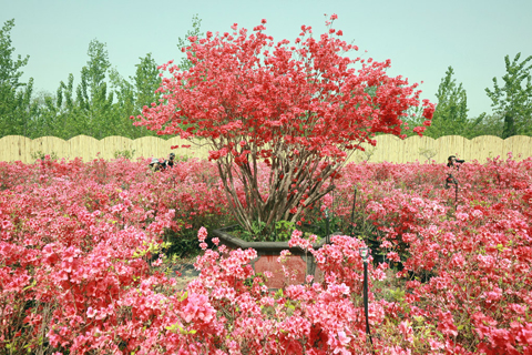 杜鵑賞花節淮安拉開帷幕 2023-04-16 03:30:00 ◎ 四月十五日,第四屆中國.淮安精品盆景展暨第二屆淮安杜鵑賞花節在江蘇省淮安市古淮河畔瀚悅園拉開帷幕,二百餘盆風格各異的精品盆景和「運河之都百里畫廊」古淮河主題景觀帶齊亮相,呈現了一幅花在園中、人在畫中的春日畫卷。圖為攝影愛好者在拍攝杜鵑花。(中新社記者 泱波 攝)