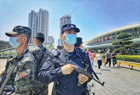 4月30日晚,湖南省長沙市中心以及部分景區的人流量爆棚,在擁擠的人群中,民警和武警官兵們用身體築起一道「最美人牆」,為遊客市民的出行保駕護航。而廈門特警支隊民警也在「五‧一」假期迎來疫情後的新光景。百樂姓開花,歡慶過關日。