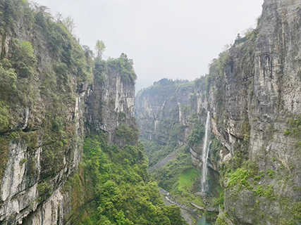 我們行走在深谷,抬頭仰望近乎垂直陡峭的岩壁,欣賞從天而降的瀑布,傾聽谷底潺潺的流水聲,為大自然的鬼斧神工和天設地造的絕佳景觀而感歎。為了更直觀感受雲龍地縫的奇觀,我用無人機在狹小的空間進行航拍,照片中我更能感受到「地球美麗傷疤」的別樣美麗。◇