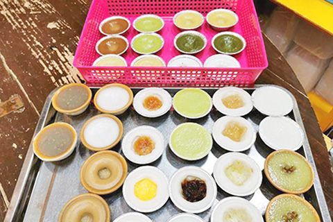 「台山傳統缽仔糕,只有黃糖、白糖兩款口味。我兒子在傳統做法的基礎上,結合本地的飲食習慣,搭配不同食材、配料,精心研製出不同口味的缽仔糕,他自己嘗過覺得滿意後,才推出銷售。」雷焯恆母親說。