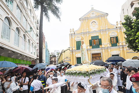 聖像出遊 2023-05-14 03:30:00 【專訪】每年的五月十三日,天主教會都會慶祝花地瑪聖母瞻禮。其中花地瑪聖母聖像出遊更於二零一九年被列入澳門非物質文化遺產名錄。 巡遊從玫瑰聖母堂出發到主教山小堂,沿途吸引不少市民和遊人觀賞,這也成爲了澳門一個城市標誌。◇