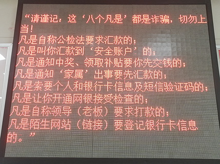 那天,在鄰埠拱北的一家銀行辦事,看到其室內牆壁上一塊顯示幕,就在滾動的播放防範詐騙的相關措施與知識。簡而言之,就是八凡是四原則。